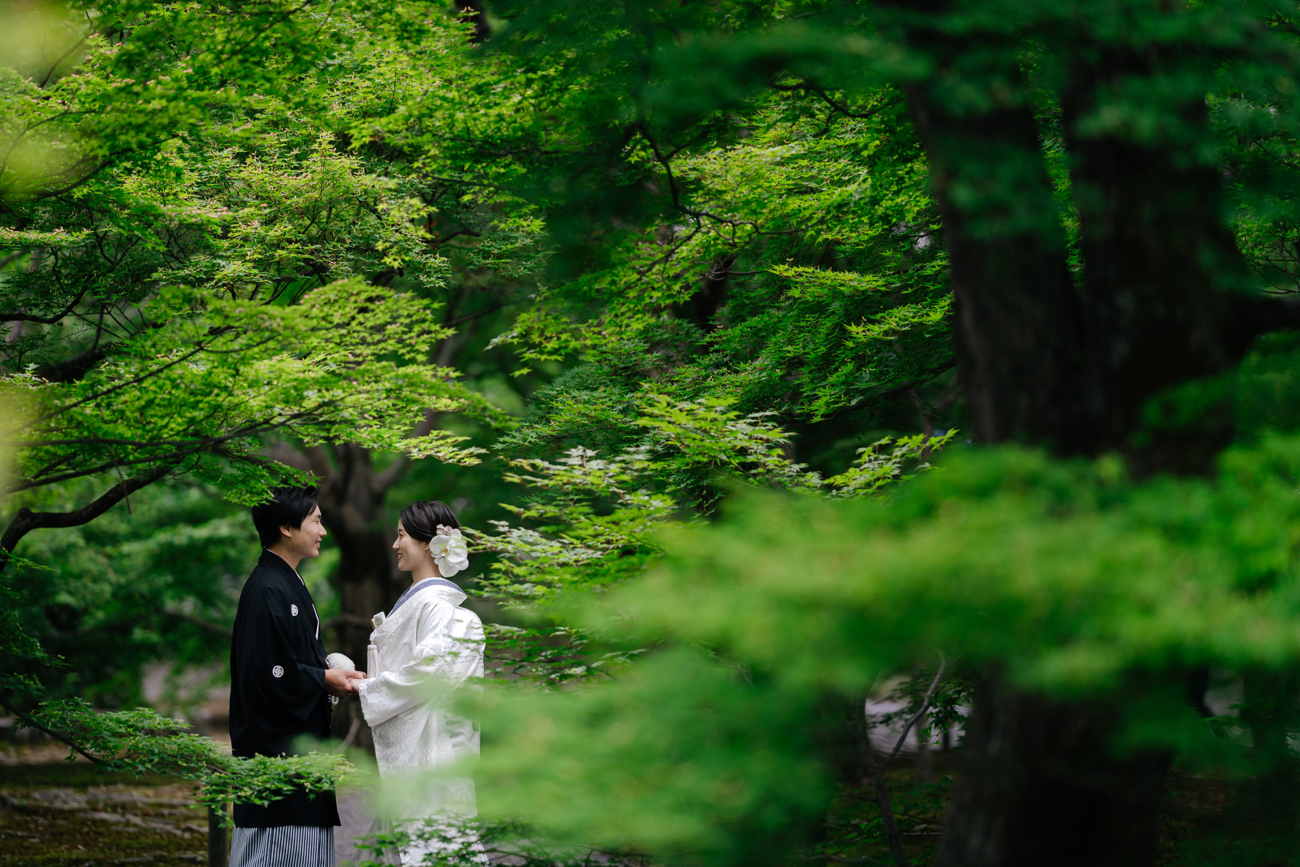 反対に新緑は白無垢にさわやかさを添えてくれます!